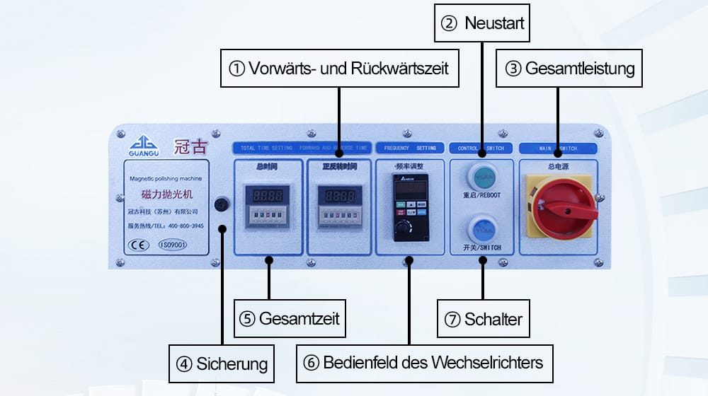 ⑥ Bedienfeld des Wechselrichters: der Drehknopf, der die Drehgeschwindigkeit des Motorssteuert.